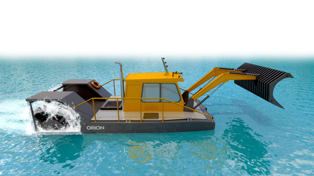 A tecnologia Orion proporciona a limpeza de lixo e vegetações em grandes ambientes aquáticos em um curto espaço de tempo, através de embarcação com baixo calado e propulsão eficiente que não é danificada por materiais flutuantes.